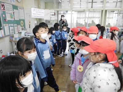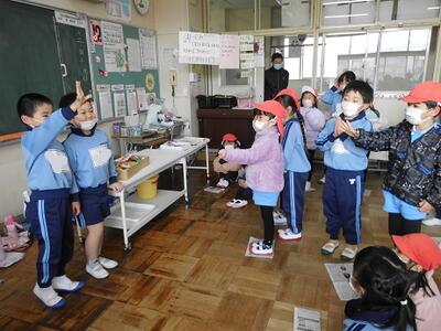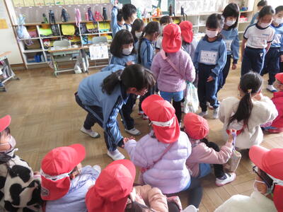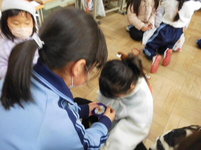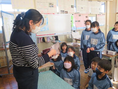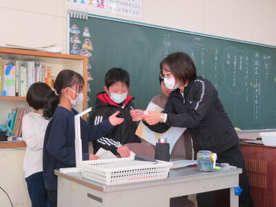 先生の近くに集まって、先生の手元に注目。