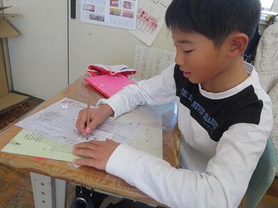 最後に今日の学習を振り返りって。「一番大切だと思うこと」「考えたこと」「ぎもん」「自分だったら~これからできること」の4つの観点で振り返り文章で表します。
