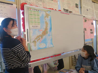 資料から『全国2位』であることを知った子供たち。「だったら1番ってどこ?」の子供たちのつぶやきに先生が地図を出して応えます。