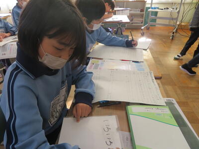 自席に戻って、会津漆器について予想や疑問を一人一人書いていきます。