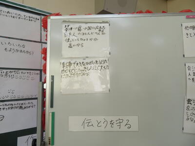 子供たちの予想を『伝統を守る』「良さを広げる』『作り方』3つに分類。
