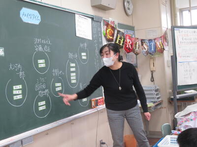 国府田敬三郎は「アメリカに渡って大規模な米作りに成功した人」子供たちがまとめる偉人を一言で言う「○○な人」。たくさんの情報の中から一言にまとめていく作業の中で、それぞれの調べ学習での知識が生かされていました。
