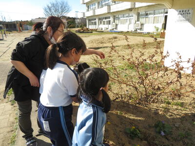 校庭にある枯れ木。雑草ではありません。大事に学校で育ててきました。