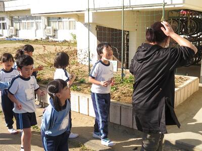 「たくさん採れた朝顔の種、みんなどうする?」先生が問うと「また、育てる!」「今度来る1年生に分けてあげる」