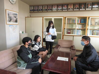 『12月の学校のめあて』を校長先生に説明しにやってきたのは児童会の代表委員の2人。