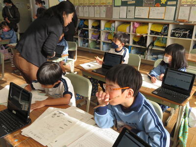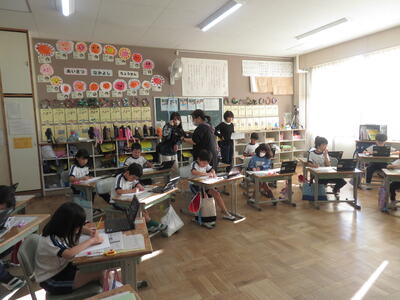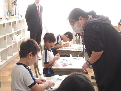子供たちの間に入って行きやすい席の並びは、子供たちに先生の称賛の言葉もかけやすいようになっています。