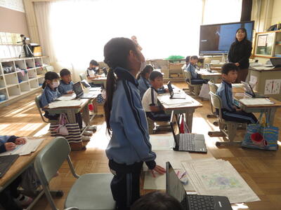 活動の最後。友達の良いところ、自分の良いところを発表します。
