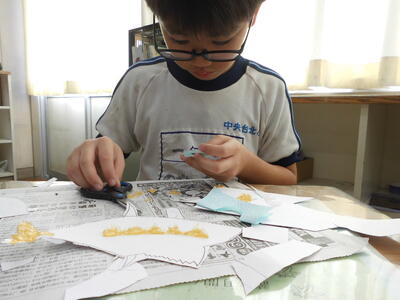 はさみ、のり、ボンド・・・道具を使ってどんどん作ります。