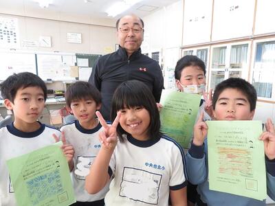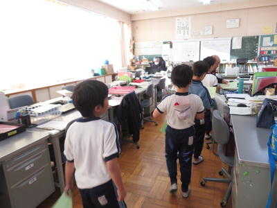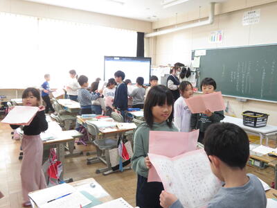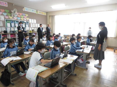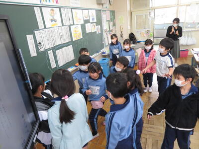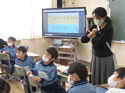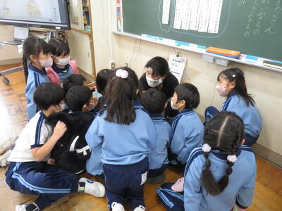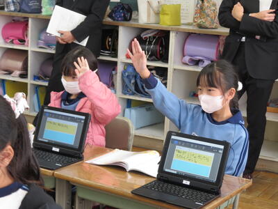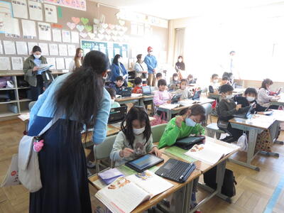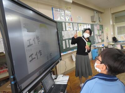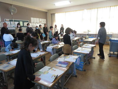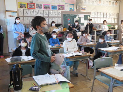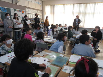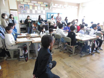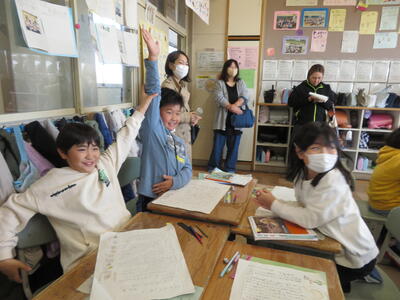授業の最後に。「参観してくれていた先生にも聞いてみたいね?」振り向く子供たち。