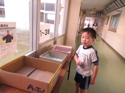 次のチャレンジの用紙をもらって。子供たち、頑張っています!
