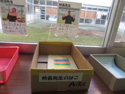 職員室に、先生がいない時は廊下に設置されている箱に入れて。