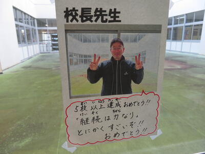 10キロ走ることができた子は理科の先生からご褒美をもらって、次のチャレンジへ。