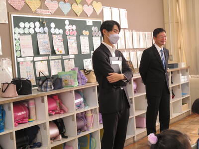 受付にて「本日の授業参観」をお持ちください。履物をお忘れの方はスリッパをご使用ください。