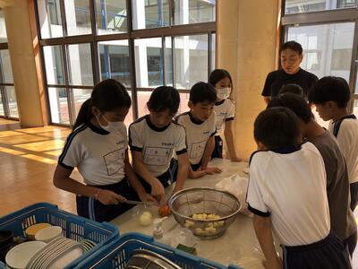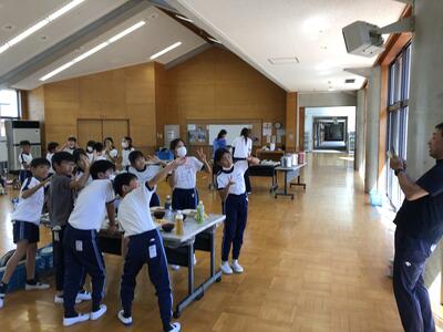 じゃんけん大会で負けたのは担任の先生。勝負に勝った子は北小の校歌を披露。「罰ゲームで負けた人が出し物をするのではなくて、勝った人がする!」ボランティアさんから教わった新し価値観。「負けた人は落ち込んでいるから罰ゲームはしない。」