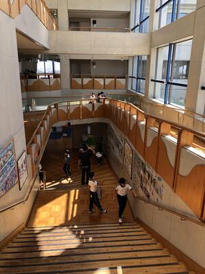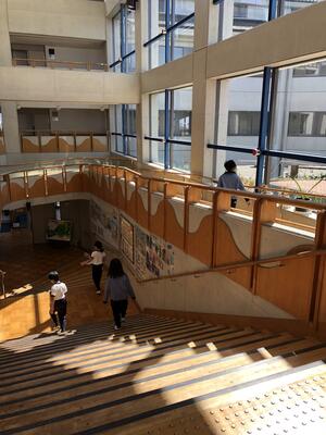 職員室には印刷や配付物、学校の掲示物の作業をしてくれるスタッフもいます。
