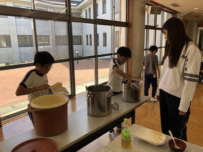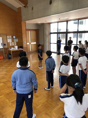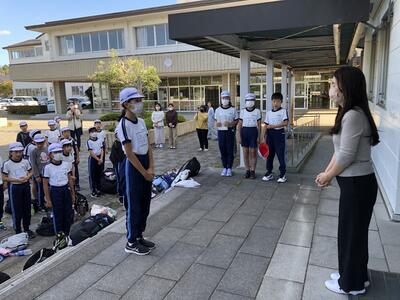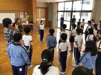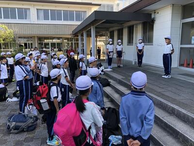 子供たち、自分たちから進んで挨拶ができました。「先に挨拶」が身についている4年生。