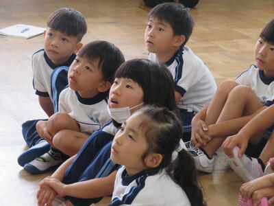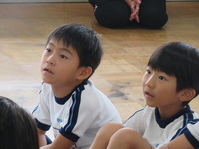 子供たちの、聴く姿。会の皆様に褒めていただきました。