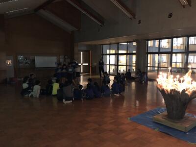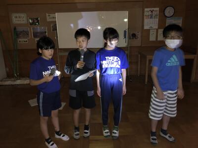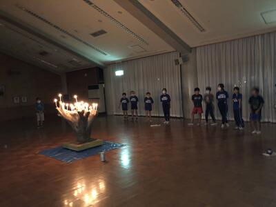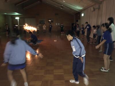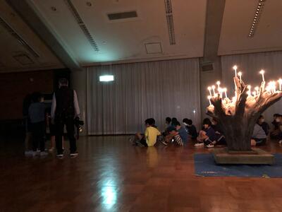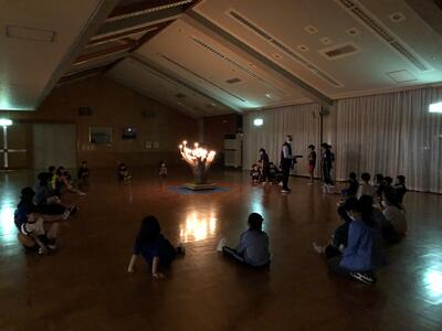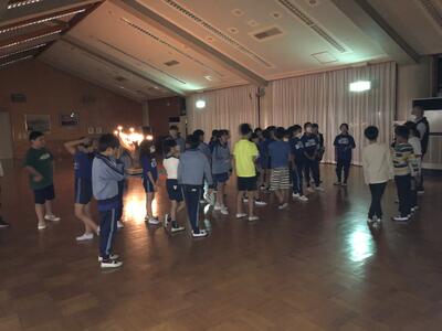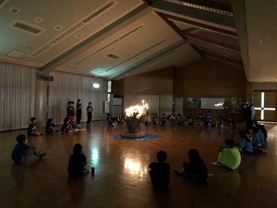 キャンドルファイヤーでは、みんなでキャンドルを囲んで班ごとの出し物を発表しました。