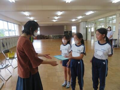 図書委員会の4年生、お礼の気持ち、伝えていました。