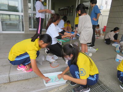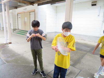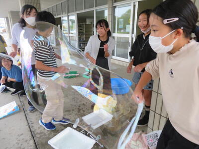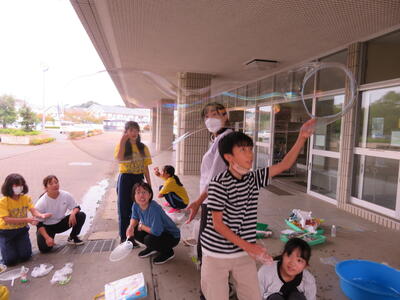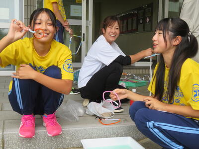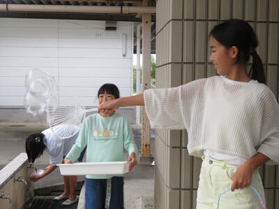 水曜日はクラブ活動の日。科学クラブはシャボン玉遊び。