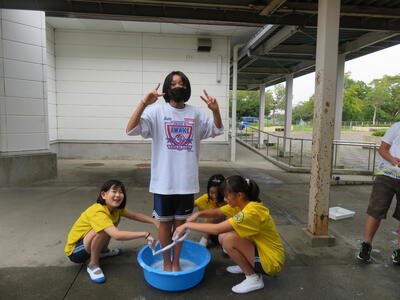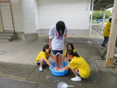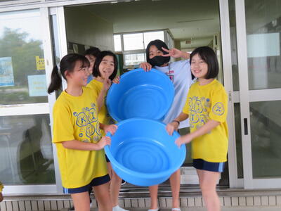 6年生、家庭科の洗濯の学習で使ったタライを持ってきました。