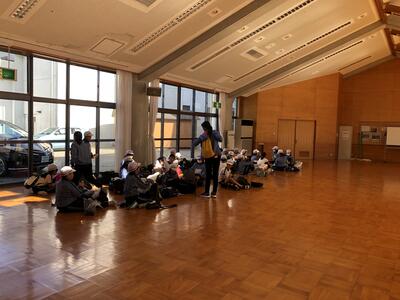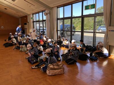 2023年10月6日 10時12分野外炊飯場まで行きましたが、強風のため、野外炊飯は中止となりました。本館で野菜の下ごしらえをして、調理は食堂にお願いすることになりました。(*_*)