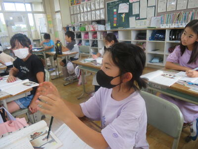 「兵十に気づいてもらえないのは悲しいな。でも、気づかれるのは怖いな。」ごんの心の揺れを子供たちなりに表現していきます。