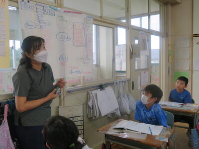 先生は、説明を減らしてできるだけ子供たちに話をさせようとします。