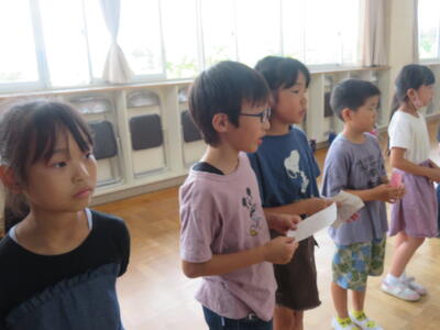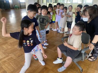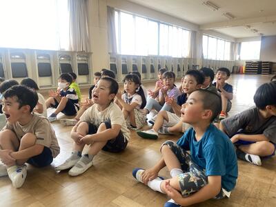 体を使って考えや気持ちを表すことも「表現」であることを子供たちが体感しました。