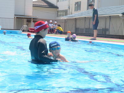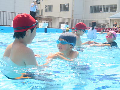 友達とお話しながら楽しい水泳学習ができていること、嬉しく思います。