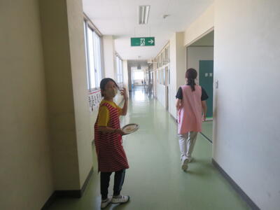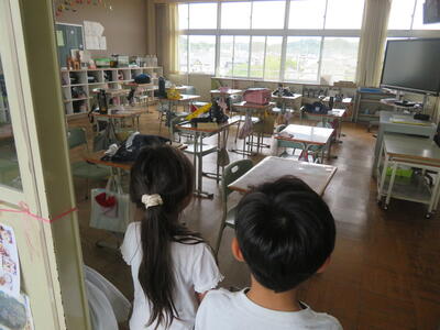 個別懇談中。特別な日課なので大休憩が15分と短め。貴重な遊びの時間、1年生、校舎から飛び出してきます。