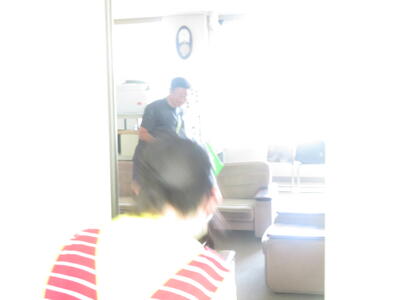 プール上がり、長い髪をターバンでまとめて。次は図工!