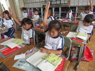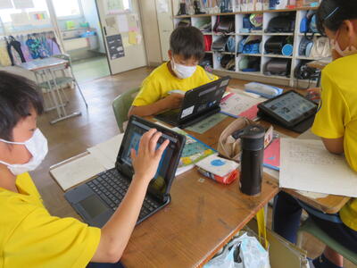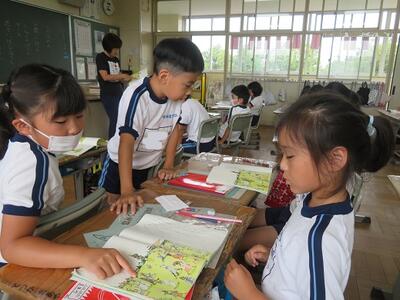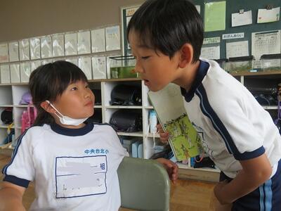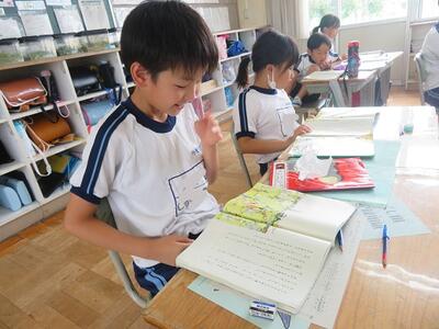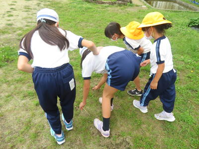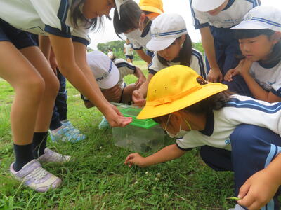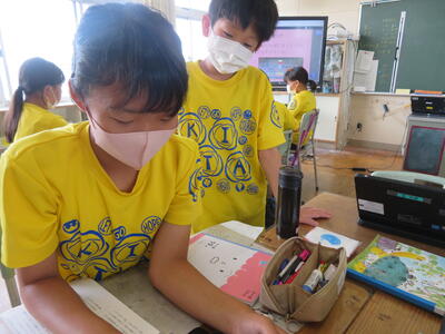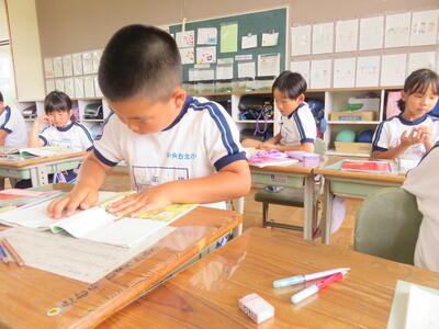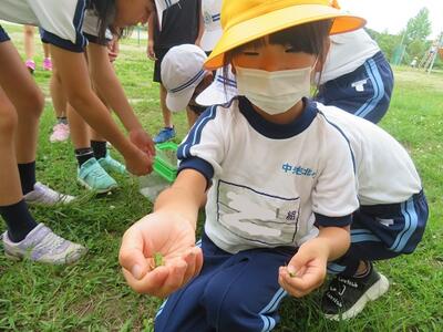 まずは一人一人が中央台北小の面白いものや不思議なことを探す活動。「毎日校長先生が草むしりしているのに生えてくる草」