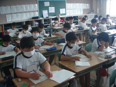 次に、ビデオを見ていじめについて考えました。いじめが起こらないようにするにはどうすればよいか、子どもたちは真剣に考えることができたようでした。