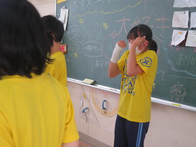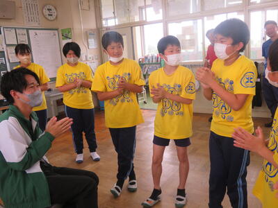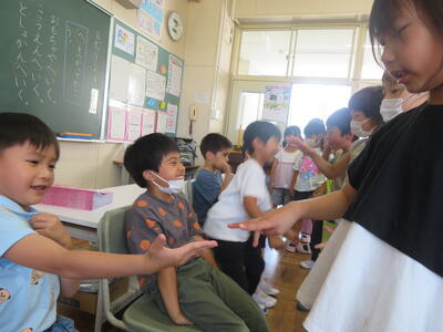 「先生の良いところ」をリズムに合わせて言うゲーム。