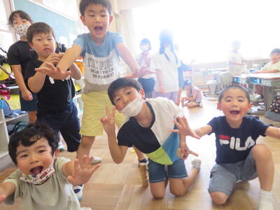 「こいのぼり」を歌って。「1番を歌う人は立って。」