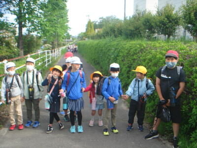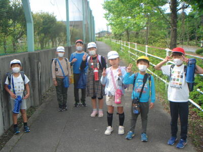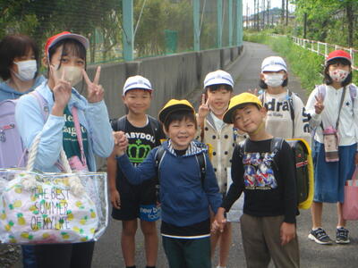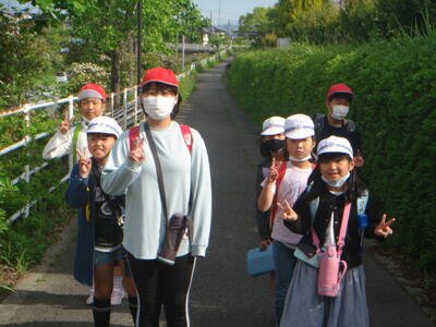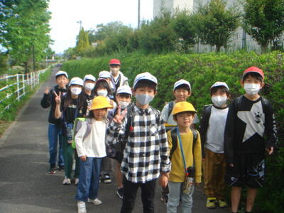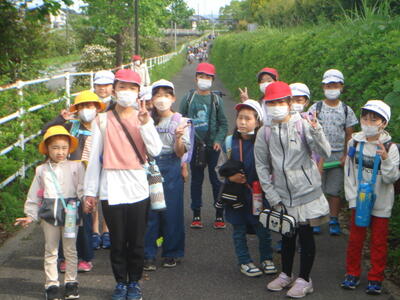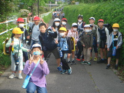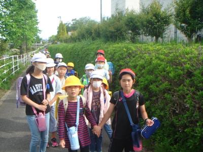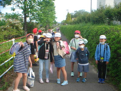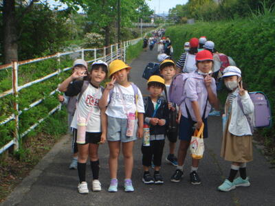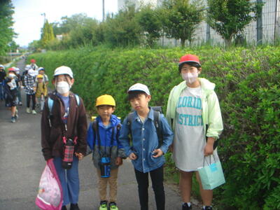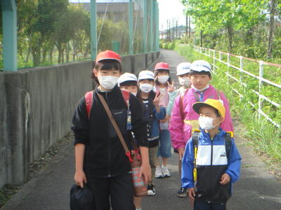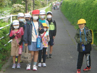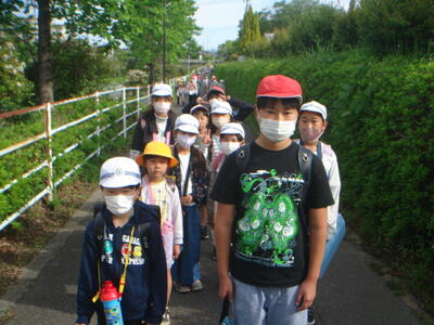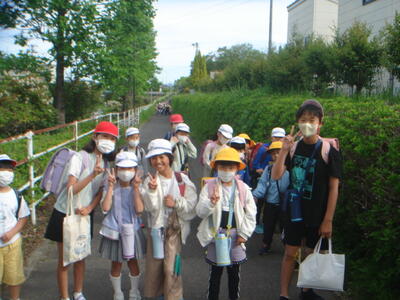 東側から来る登校班の皆さんは、班長を先頭にきちんと並んで登校できていました。(^^)
