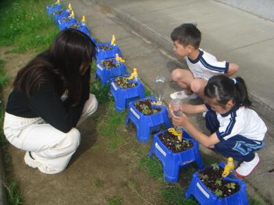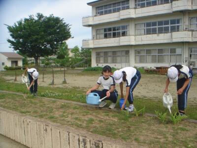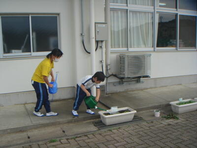 環境委員会の皆さんは、毎朝交代で花の水やりをやってくれています。