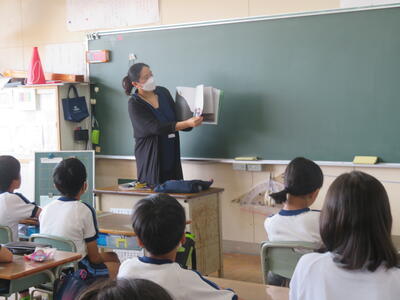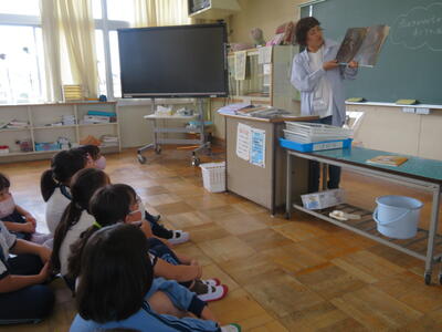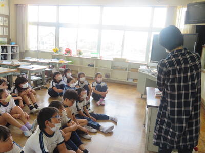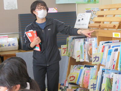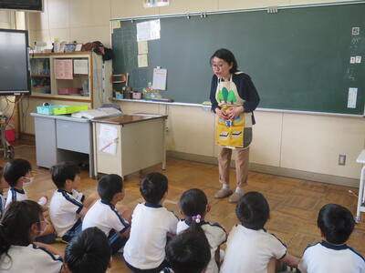 本校には週3回、図書館の先生が来ます。図書についての相談にのってくれたり読み聞かせをしてくれたり。
