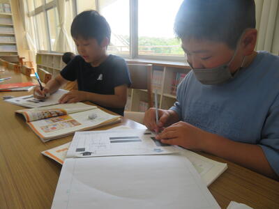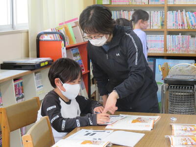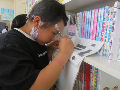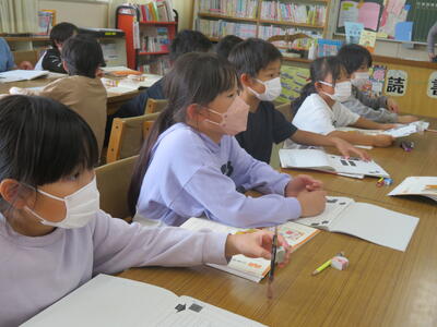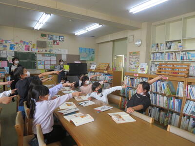 今日の5時間目、図書館にて。楽しい雰囲気の中で、しっかりと知識を身につけ学びを深める姿がありました。