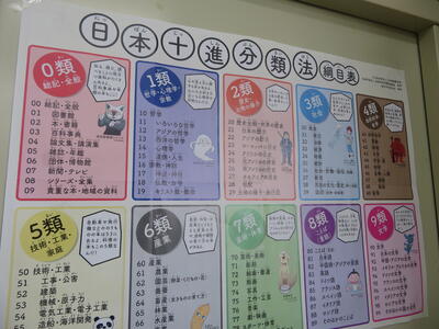本の並び方は、学校図書館も公共の図書館も一緒。日本十進分類法を使っています。