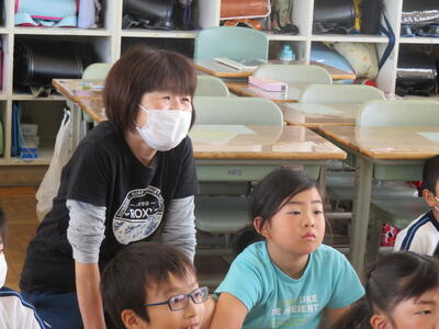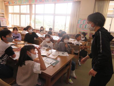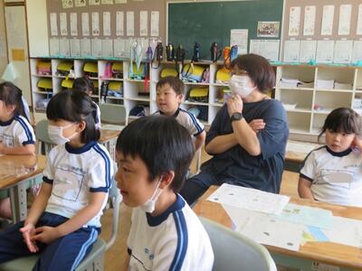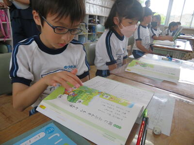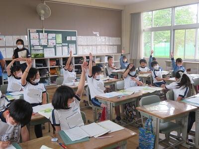「教科書にも載っているよ」先生が声をかけると「58ページ!」子供たちが答えます。先生は敢えて言わない。子供たちにどんどん声を出させる機会を与えます。