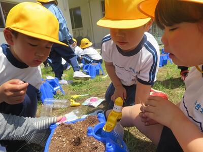 子供たちの発見に、先生も一緒になって喜びます。「すごい!よく発見したね!」