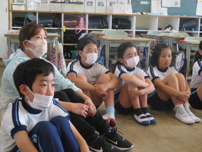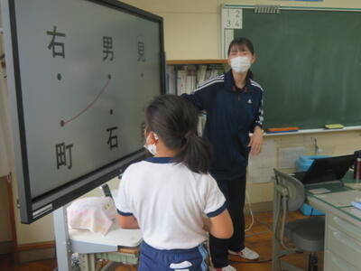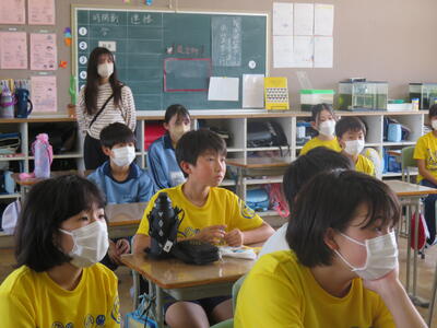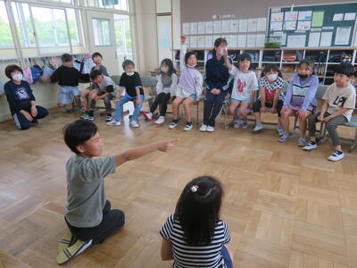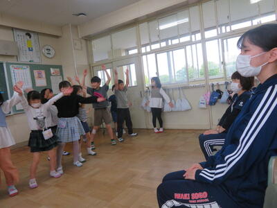5校時、実習生とのお別れ会。クイズやジェスチャーゲームや。