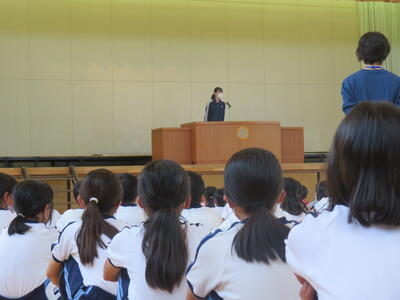 校長先生のお話。そして今日は実習生のお別れとカウンセラーの紹介。