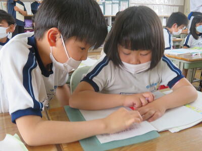 「友達と話し合ってみて。」先生からの指示。わかった時も、わからない時も近くの友達と話がしたくなります。子供たちの気持ちに沿った先生からの指示。