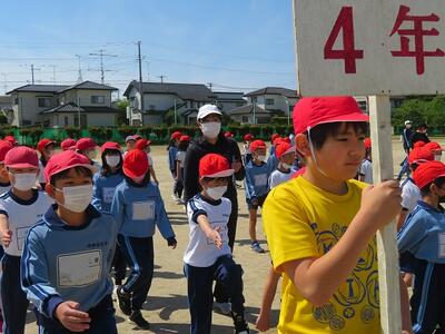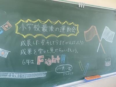 運動会への意欲に満ちた子供たちの登校を待っています。