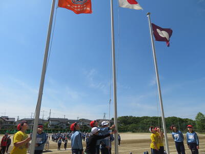 掲揚は音楽が終わるまでに・・・。当日はうまくいくはず!