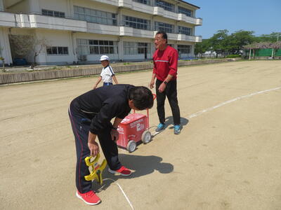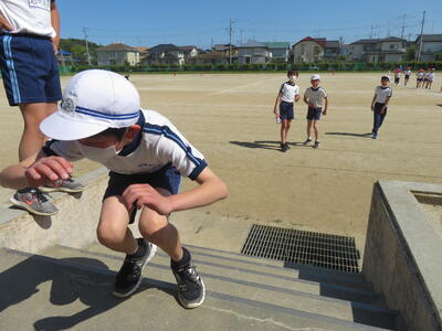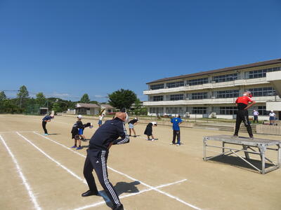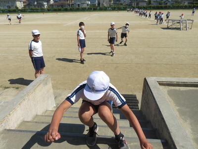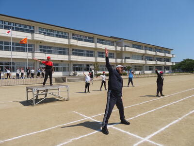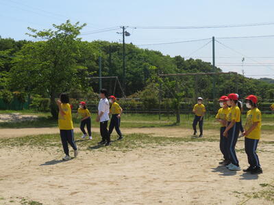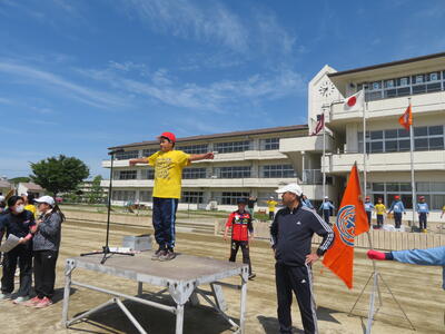運動委員会、委員長さん。練習の成果が出ています。傍で見守る担当の先生。