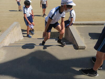 「階段の下からジャンプして5段目まで飛ぶことができるか」というチャレンジをしていました。